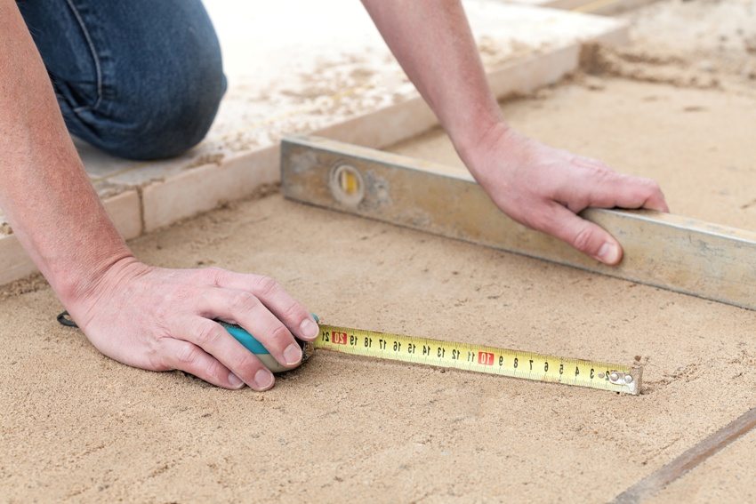 ¡Consejo útil! La altura de la capa intermedia debe ser de aproximadamente 3-5 cm, de modo que, como resultado, la superficie del revestimiento de baldosas se eleve 1 cm por encima del nivel de colocación planificado. Con el tiempo, los adoquines se encogen gradualmente, por lo que este espacio está diseñado para compensar la diferencia de altura que se forma durante la operación.