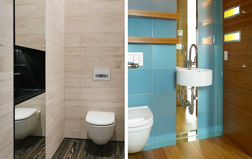 - use paneles de vidrio o espejos para aumentar el espacio. El techo con espejos en el inodoro no es la mejor opción, pero los elementos de vidrio en las paredes se verán muy beneficiosos;