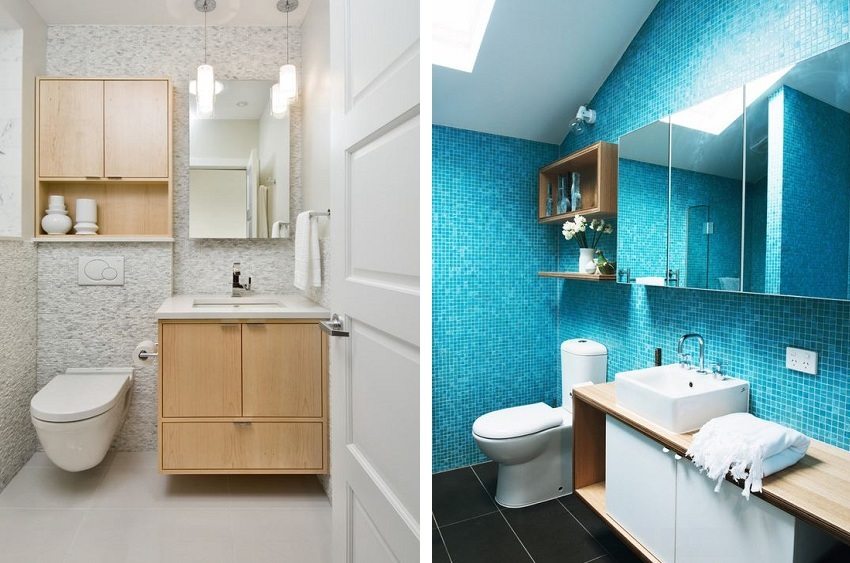 Diseño de baño pequeño: fotos de diferentes colores.