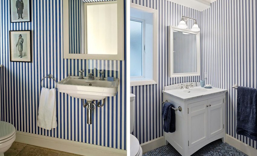 Recientemente, el material popular para paredes de baños y aseos se ha convertido en papel pintado resistente a la humedad... Se ven bien en cualquier habitación, toleran la alta humedad y otras influencias adversas.
