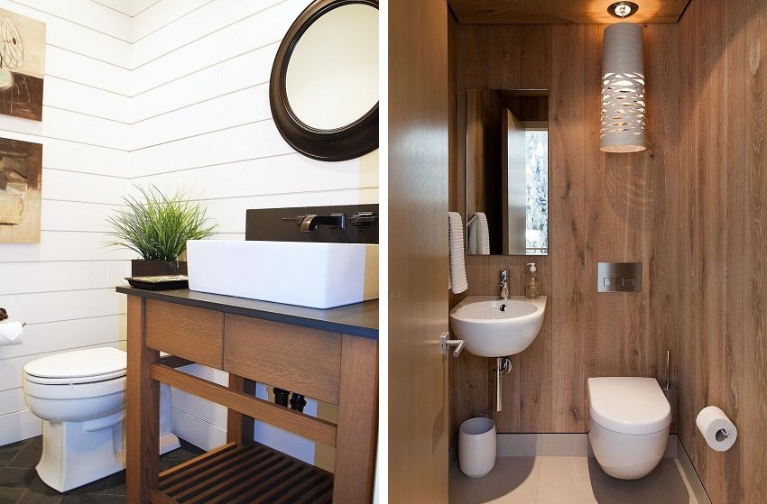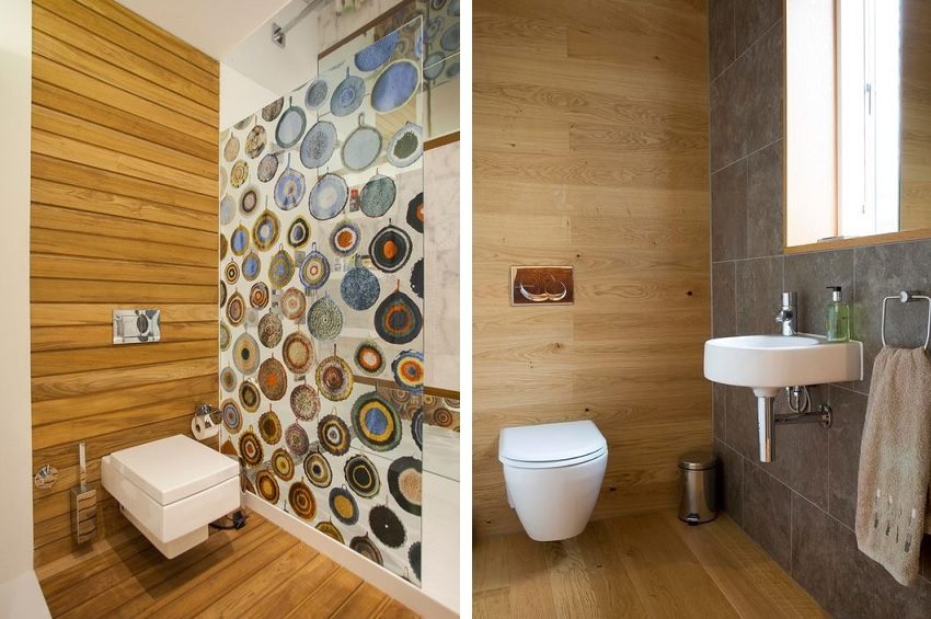 Primero, debe elegir la madera más duradera y resistente a la humedad. En segundo lugar, sería bueno tratarlo adicionalmente con compuestos especiales, barnices e impregnaciones, lo que aumentará sus propiedades operativas. En este caso, el diseño del inodoro con paneles de madera te deleitará el mayor tiempo posible.