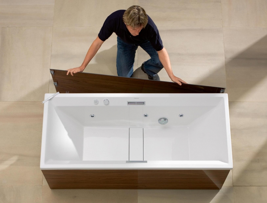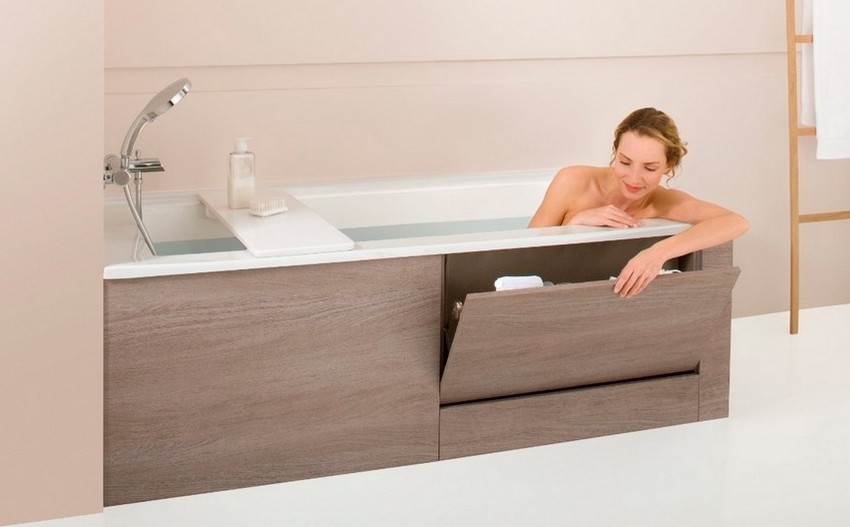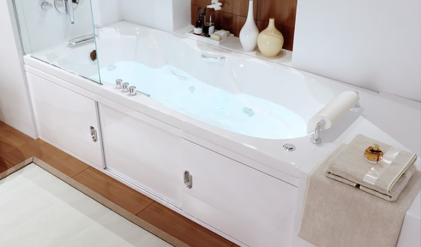 ¡Consejo útil!Hoy en día puede encontrar productos equipados con varios elementos auxiliares que son necesarios para su comodidad. Estos productos incluyen paneles con estantes, asas para personas con movilidad reducida y mamparas que incluyen una abertura para las piernas.