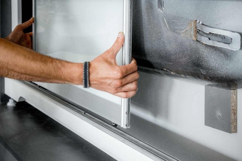 Para los modelos correderos de mamparas, los paneles se pueden realizar en forma de puertas que se abren sobre bisagras.