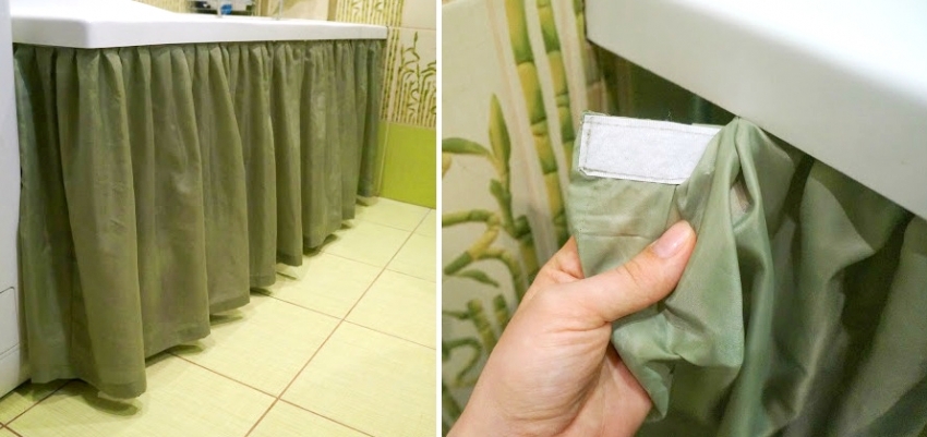 ¡Nota! Esta solución no estándar solo es adecuada para habitaciones con buena ventilación, ya que la cortina no puede proteger las tuberías del aire húmedo.