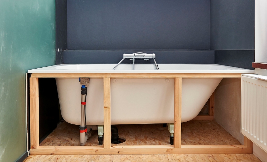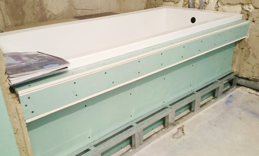 ¡Importante!Para proteger el espacio debajo del baño, debe usar un tipo de lámina de yeso resistente a la humedad.