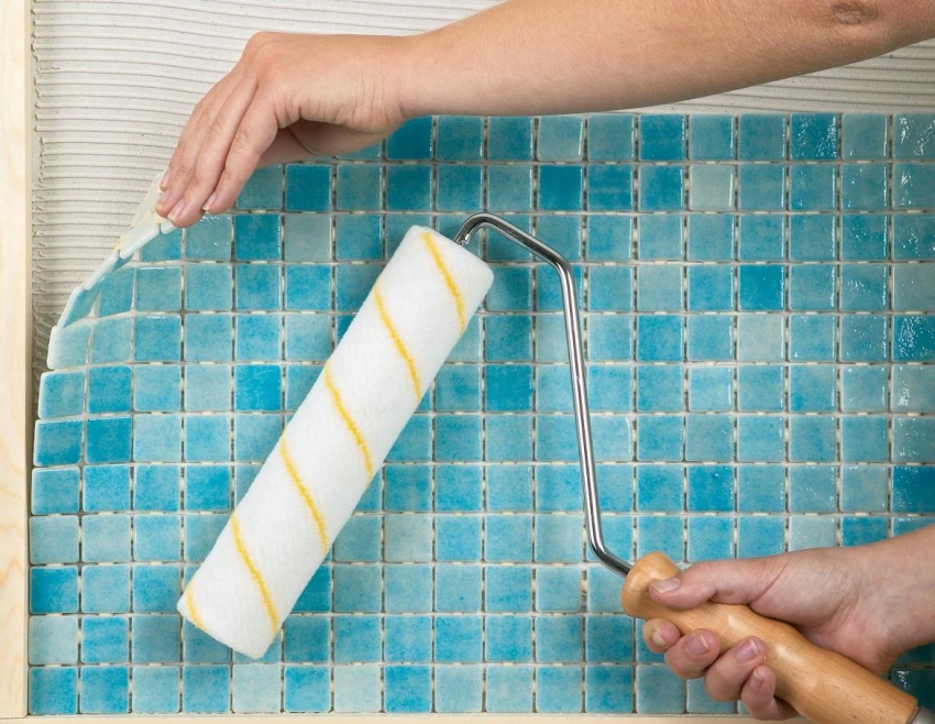- cada elemento individual de las baldosas debe lubricarse con pegamento para baldosas;