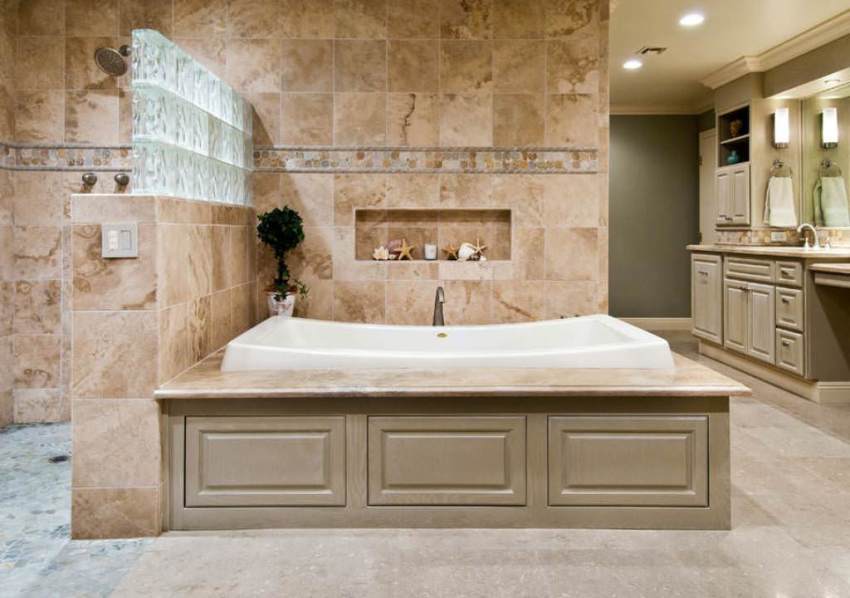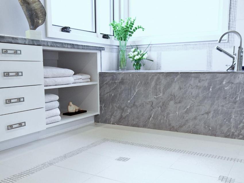 - Al final, el panel de yeso se reviste con baldosas cerámicas.