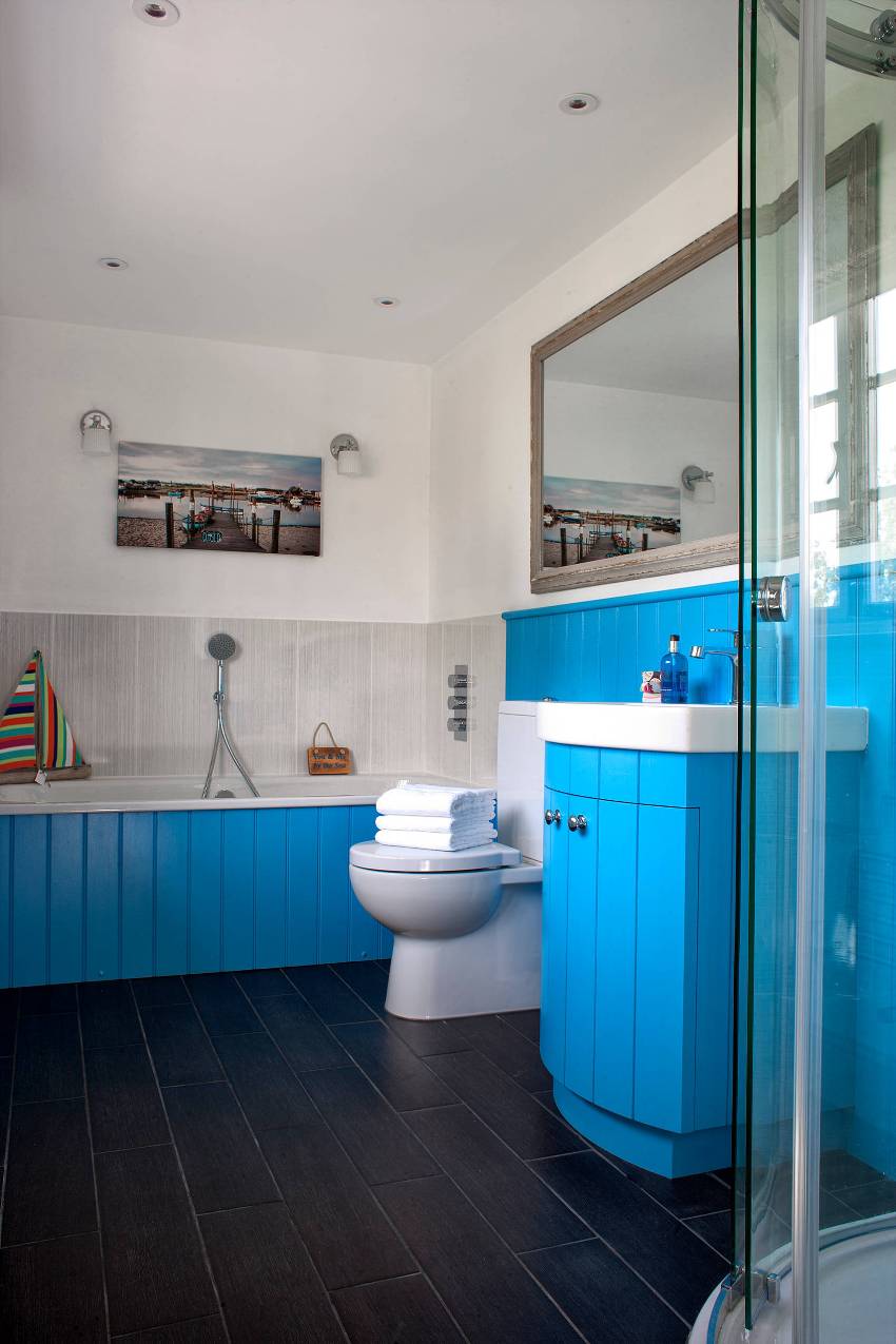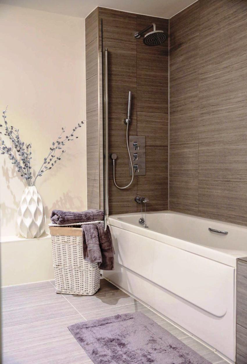 Por lo general, la mampara tiene los mismos azulejos que todo el baño, por lo que encaja perfectamente en el interior de la habitación.