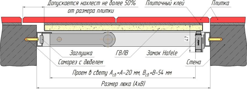 ¡Aviso util! Para este modelo de trampilla, se permite montar baldosas de un tamaño mayor que la propia tapa de la trampilla, lo que evita molestos recortes.
