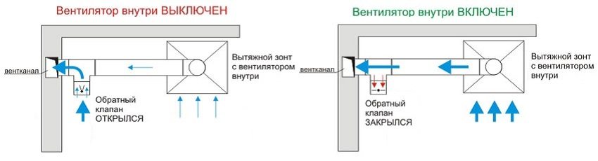 La instalación de una válvula de retención para ventilación en la cocina le permite bloquear incluso cuando está apagada capucha el flujo de olores extraños con tiro inverso, pero al mismo tiempo no evita la extracción del aire de escape de la cocina hacia el canal de ventilación.