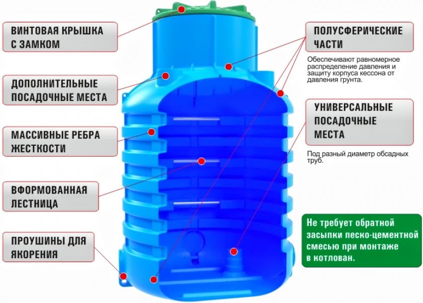 Entre las desventajas de este tipo de equipo, solo se puede distinguir una desventaja significativa: el plástico es propenso a deformarse. Sin embargo, esto solo puede suceder cuando el agua subterránea está demasiado cerca de la superficie de la tierra. Si tuviera que enfrentarse a tal situación, puede resolver el problema vertiendo una capa de hormigón de 10 cm alrededor del tanque.