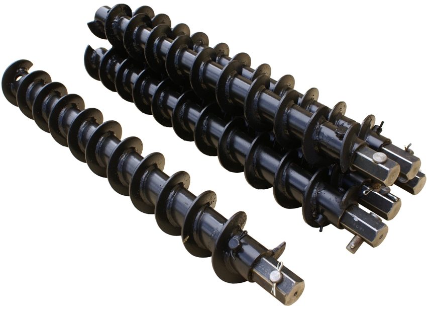- tornillo. Tiene espirales planas con paso rápido. Al final de la herramienta hay un martillo que rompe la roca y espirales planas la llevan a la superficie. La eficiencia de la barrena se puede aumentar utilizando un pequeño motor para girar, por ejemplo, desde una sierra, un arado motorizado, etc.;