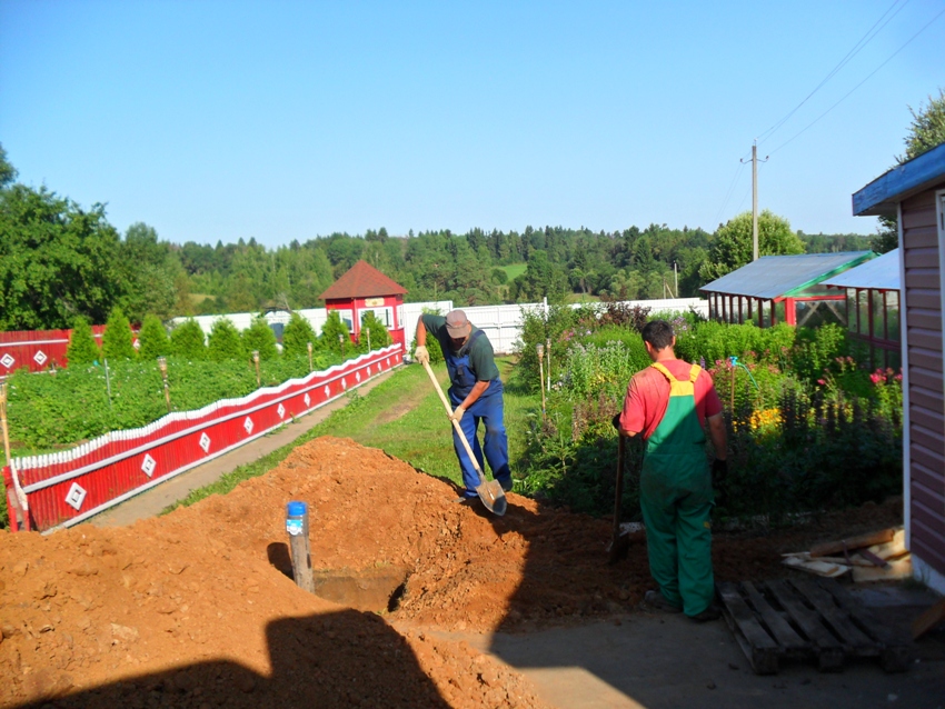 Para conectar el suministro de agua a la casa, se deben colocar tuberías. Si no planea colocar el aislamiento en forma de túnel de cemento (que es problemático y requiere mucho tiempo), debe cavar una zanja que los bajará por debajo del punto de congelación. Otra opción para el aislamiento pueden ser los materiales de lámina de fibra de vidrio.