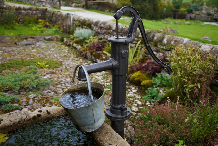Puede comprar una bomba manual para agua de pozo. Requiere esfuerzo físico, pero es mucho más confiable, mucho más económico, más fácil de reparar y más duradero en funcionamiento. Las bombas manuales son de varios tipos: