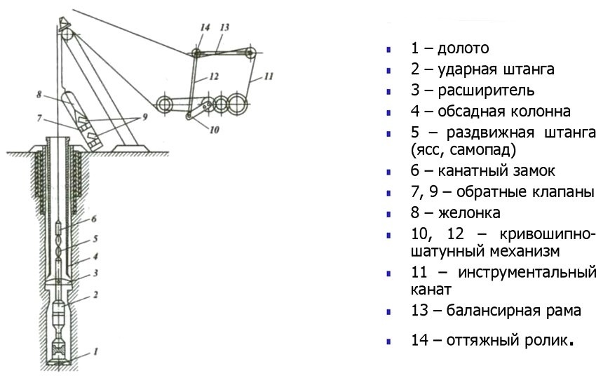 - vaso. Es una tubería regular con extremos inferiores puntiagudos. Trabajar con él consiste en levantarlo y dejarlo caer desde una altura de 2-3 m hasta el fondo. Extremos afilados cortan la roca y la arrancan de la cara;