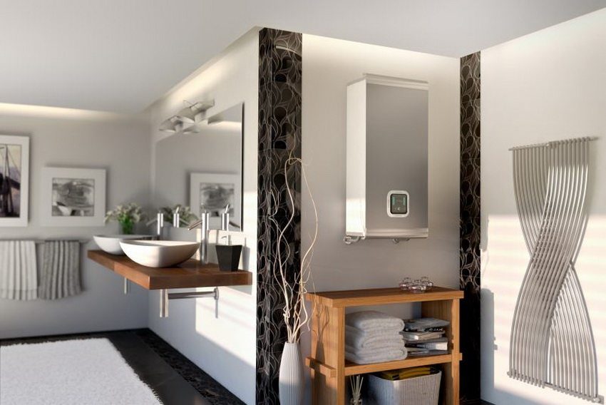 Por cierto, el consumo de energía de una caldera plana o en forma de barril del mismo volumen prácticamente no difiere entre sí, por lo que al elegir una forma, guíese por la disponibilidad de espacio libre en el apartamento.El calentador de agua acumulador plano vertical de 80 litros es la mejor opción para un pequeño apartamento moderno.