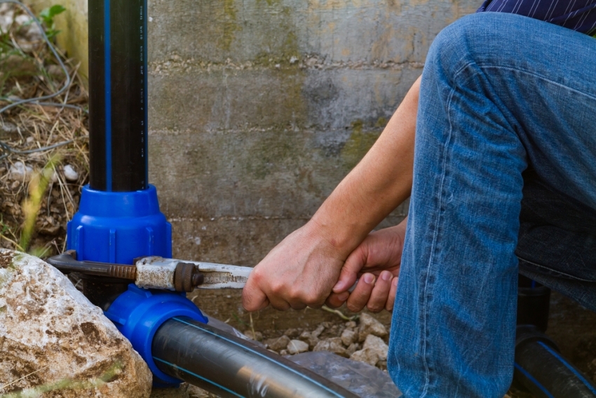 Tendido de una línea para organizar el suministro de agua en una casa de campo desde un pozo.