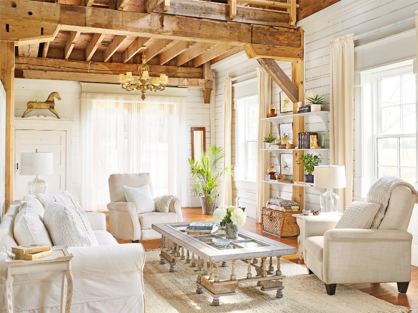 - 2 Kuinka luoda kaunis olohuoneen suunnittelu: valokuva sisätiloista Provence-tyylillä