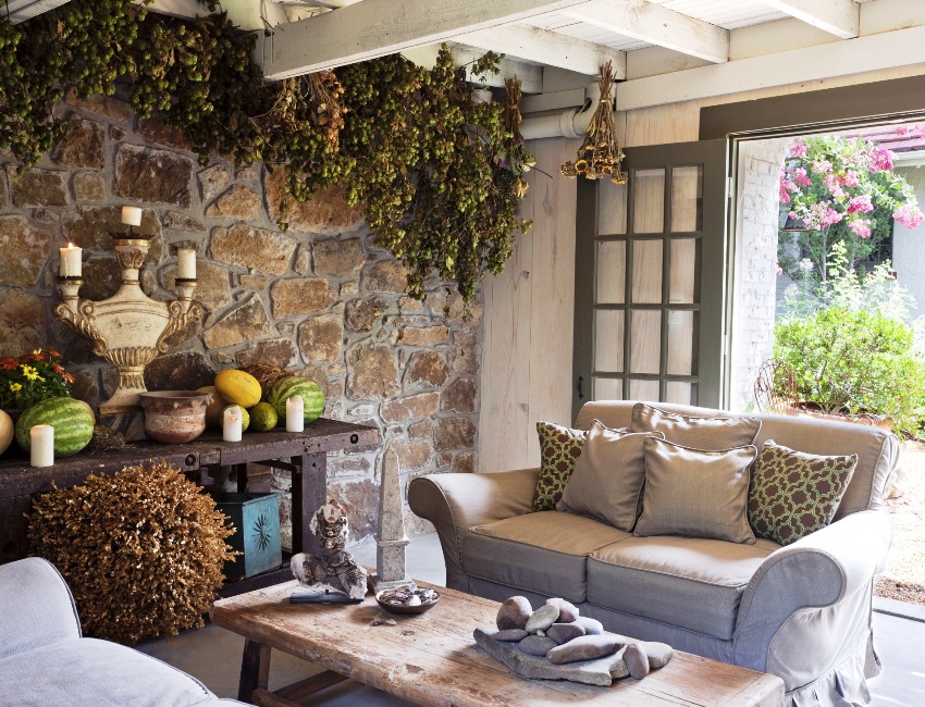 Inspiraatio tämän suuntauksen luomiselle oli maalaismaisen luonnon yksinkertaisuus ja kauneus, jotka voidaan siepata valokuvassa esitetyissä sisätiloissa; Provence-tyyliin tehty kunnostaminen merkitsee kylätalojen ilmapiirin luomista olohuoneeseen käyttämällä auringon palaneiden luonnonkukkien ja yrttien palettia.