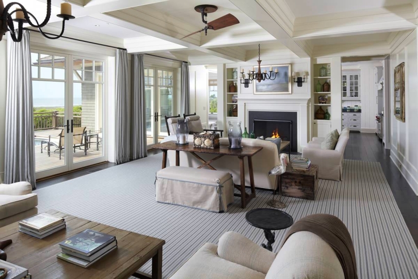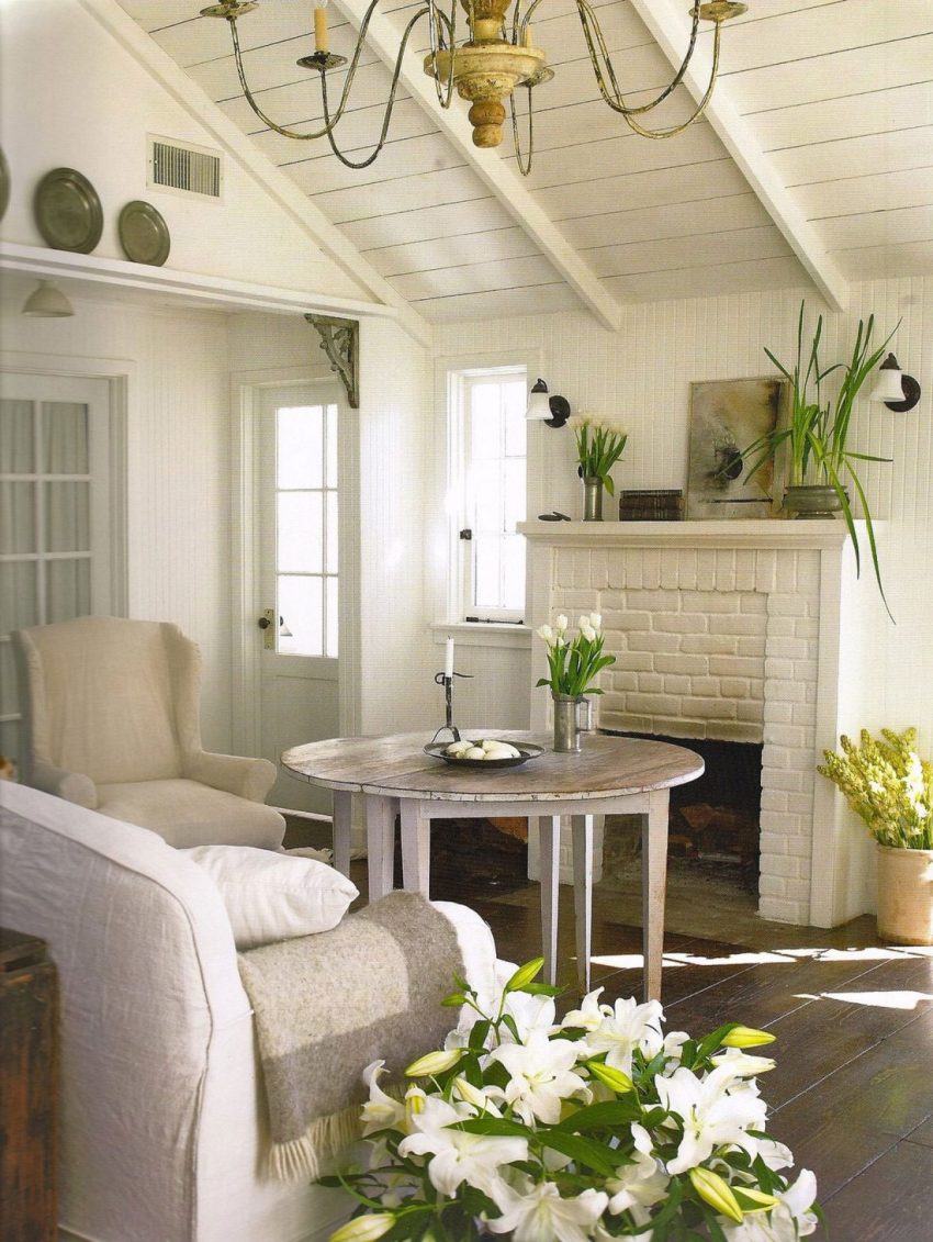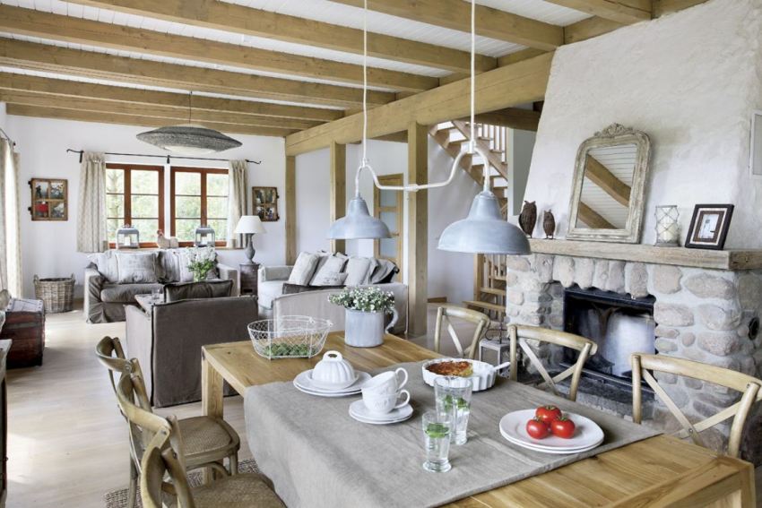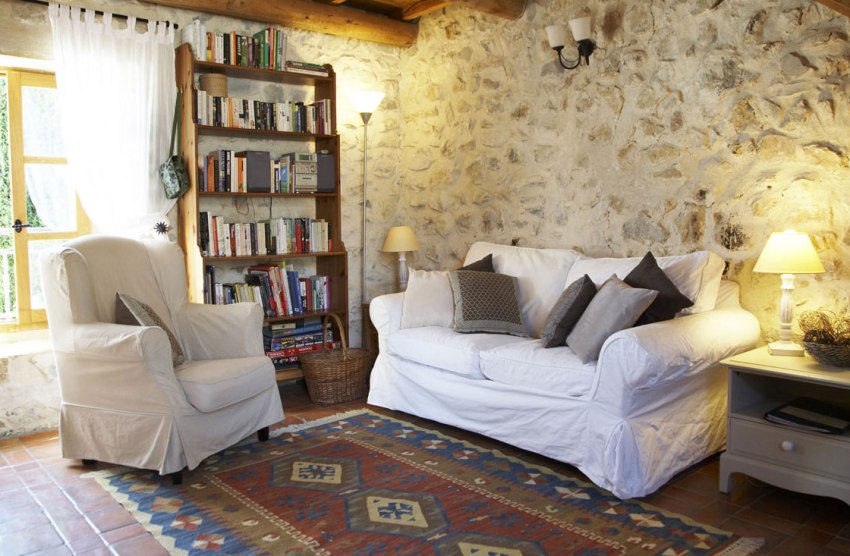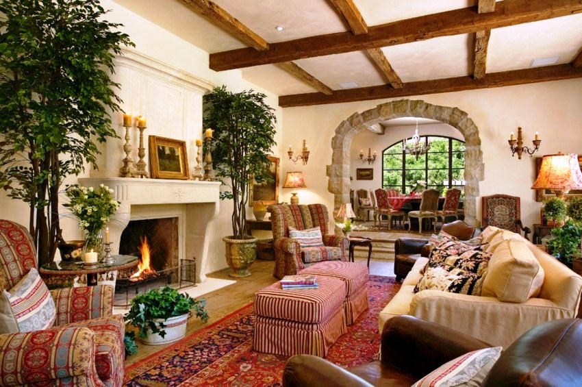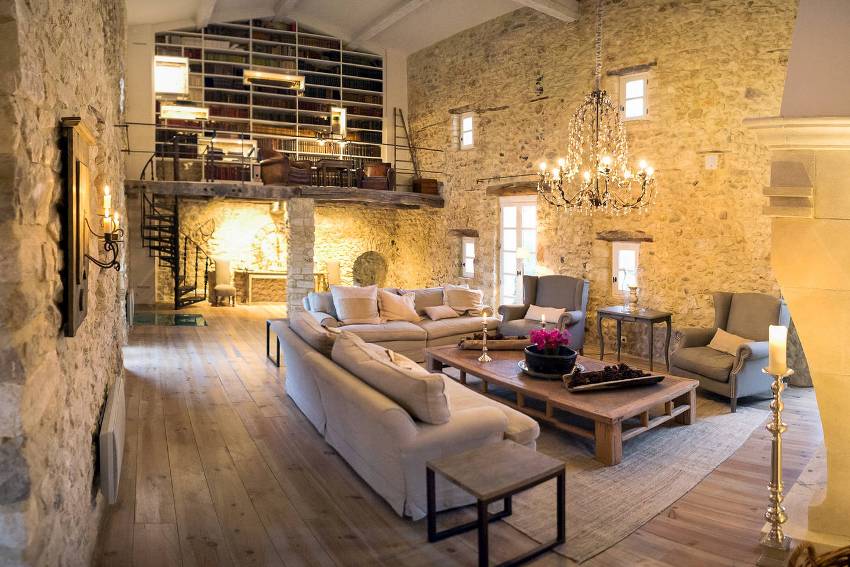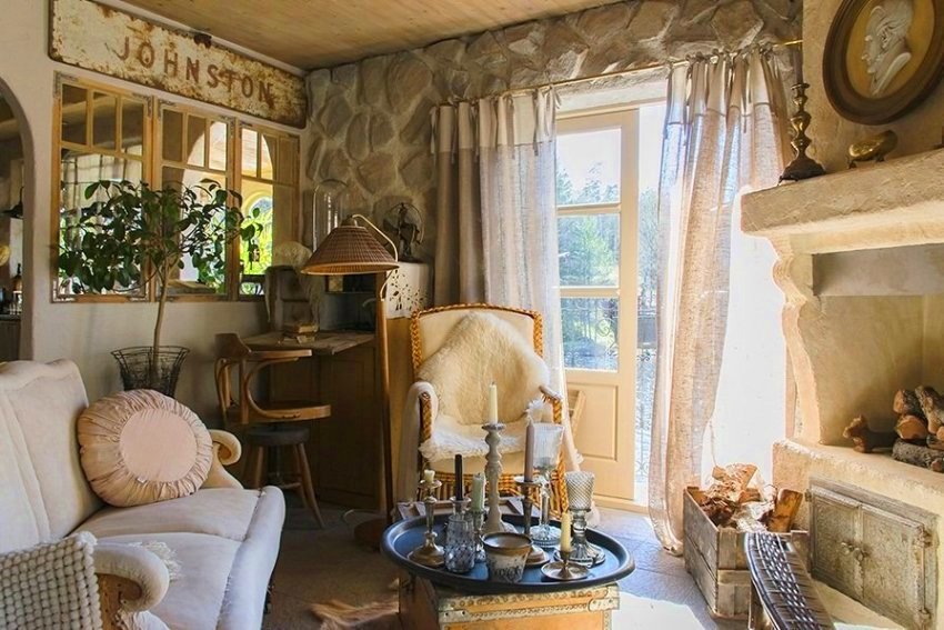 Provence-tyylinen olohuone, jossa on takka: miten luoda lisää mukavuutta huoneeseen