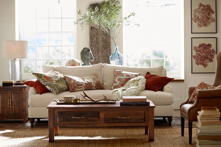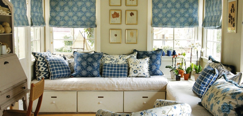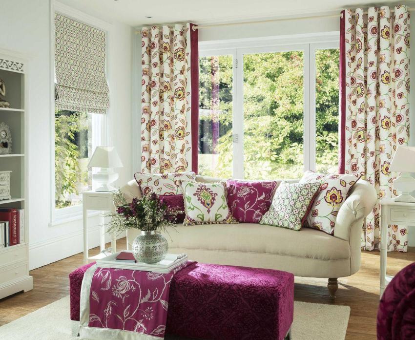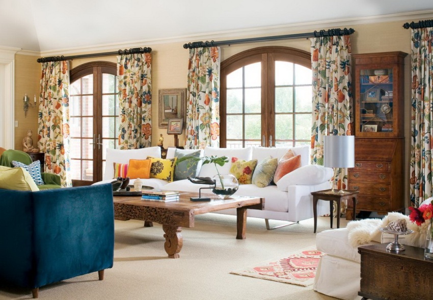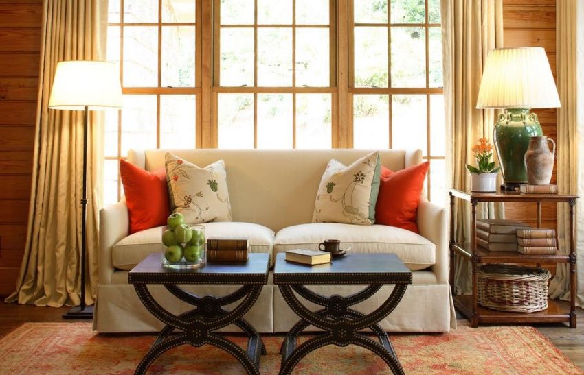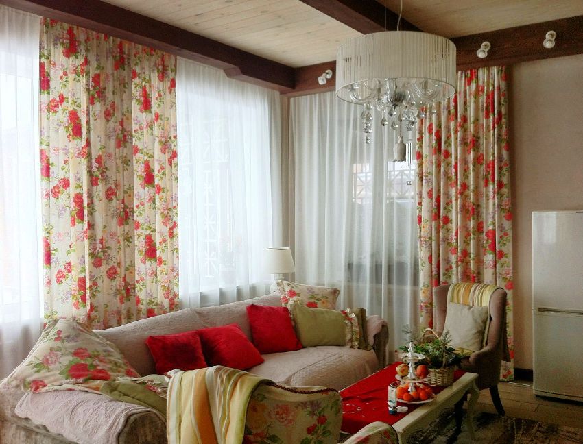 Kuinka sisustaa Provence-tyyli olohuoneessa tekstiileillä ja verhoilla