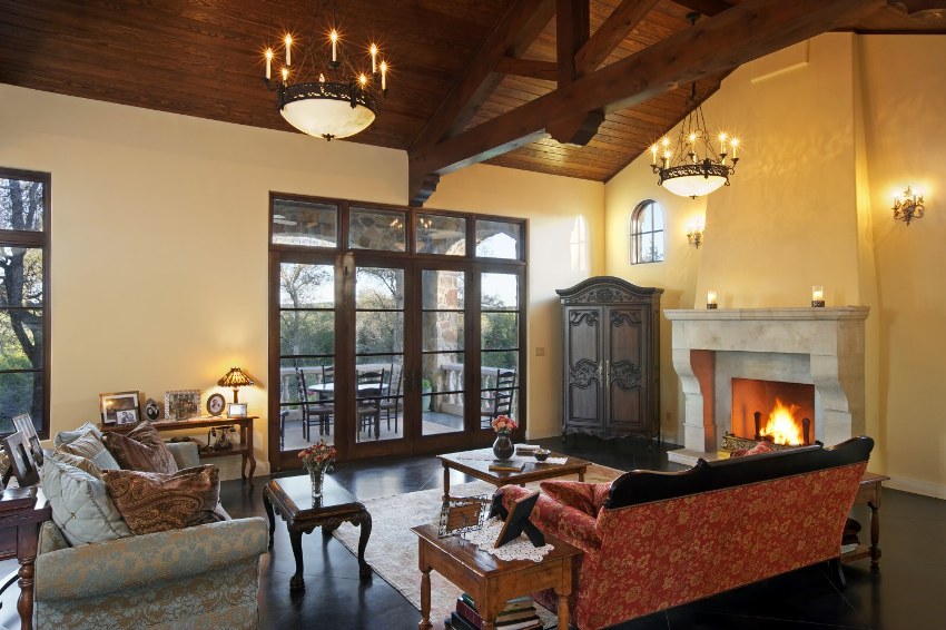 Suunnittelijat eivät päässeet yksimieliseen mielipiteeseen takan läsnäolosta Provencen olohuoneen sisätiloissa. Siksi päätöstä tehtäessä kannattaa aloittaa henkilökohtaisista mieltymyksistä. Tärkeintä on, että takka sopii orgaanisesti huoneen tilaan ja säilyttää tyylinsä.