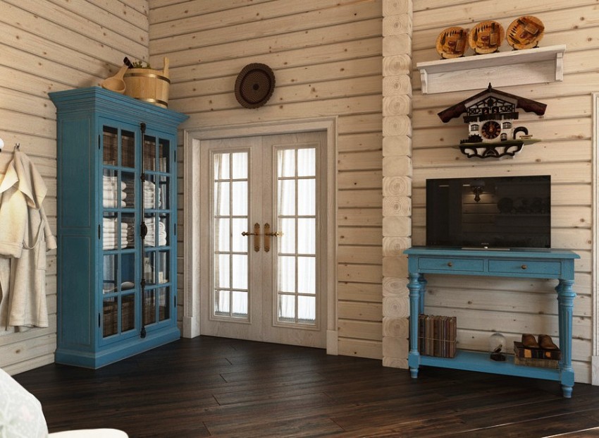 Puu voidaan korvata rappauksella, mutta pintaa ei tasoiteta etukäteen. Paras vaihtoehto olisi koristeellinen kipsi. Lattiat tulee peittää luonnonkivellä. Kuten keittiössä, on suositeltavaa jättää kaaria parvekkeen ja olohuoneen väliin, jotta seinien ja lattian koristeluissa olevat materiaalien pienet ristiriidat voidaan tasoittaa. Pienellä vaivalla nämä erot eivät ole havaittavissa.