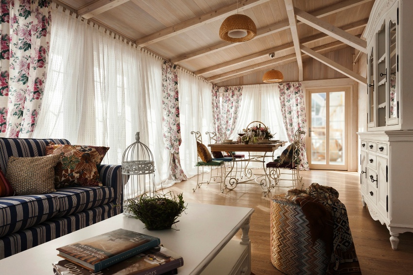 Kuinka luoda kaunis olohuoneen suunnittelu: valokuva sisätiloista Provence-tyylillä