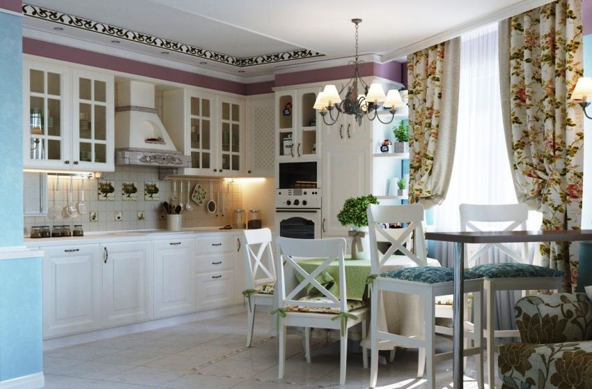 Kätevä ja käytännöllinen sisustus Provence-tyyliin: keittiö-olohuone