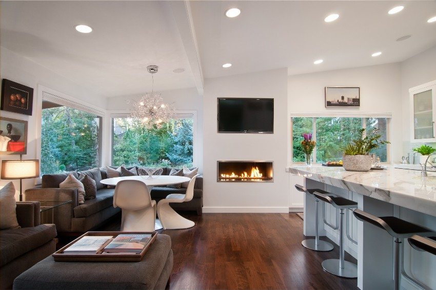 Yhdistetyt keittiöt ja olohuoneet: missä tämä muotoilu on tarkoituksenmukaista