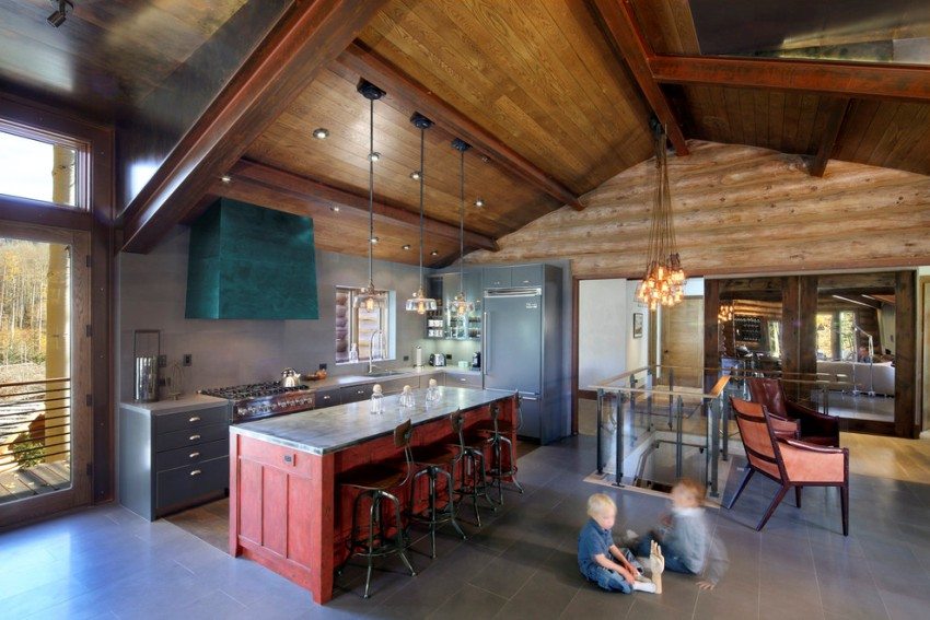 Olohuoneen suunnittelussa, keittiö ja ruokasali käyttivät elementtejä skandinaaviseen tyyliin