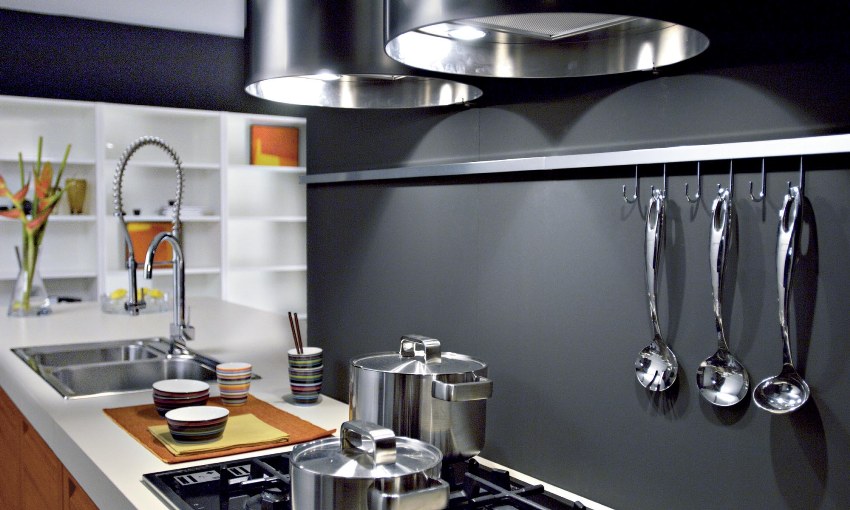 Hi-tech- tai techno-tyyliin sisustetun huoneen sisätiloissa mielenkiintoinen ratkaisu on pitkien, suorakulmaisen, poikkileikkaukseltaan mattapintaisen, tasaisen metallitangon käyttö, joka sijaitsee yksinomaan työpinnan yläpuolella. Keittiön musta kaide näyttää tyylikkäältä ja epätavalliselta.