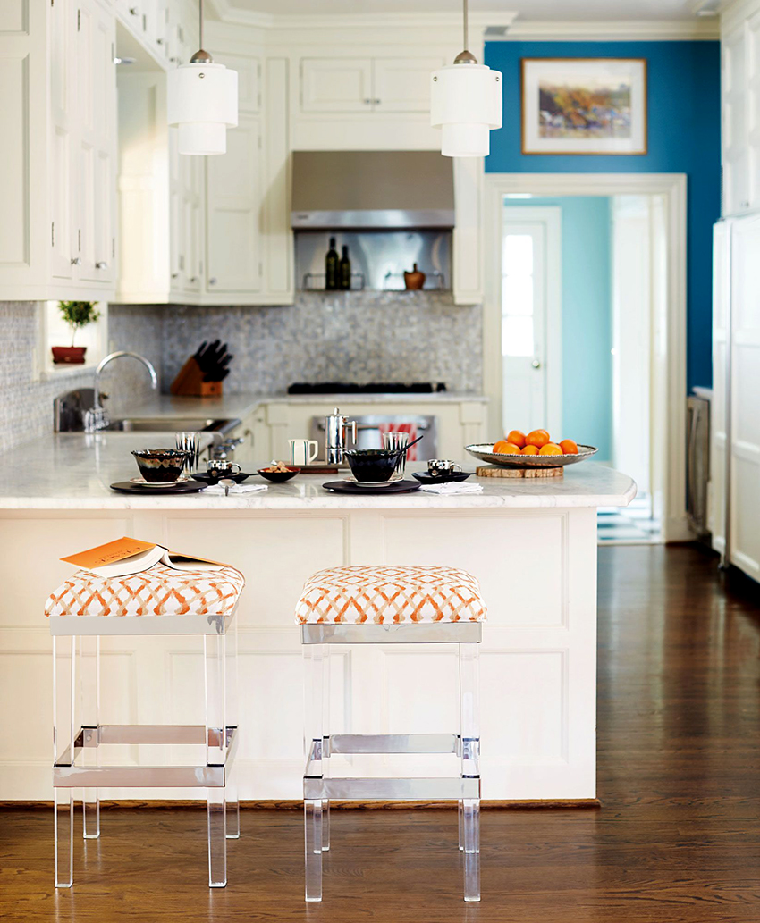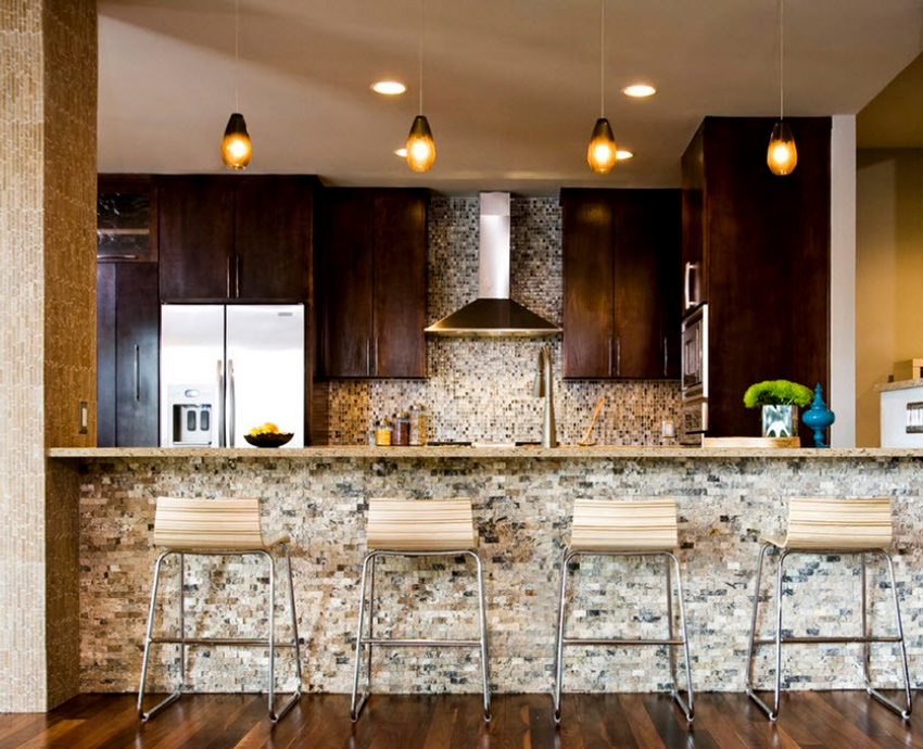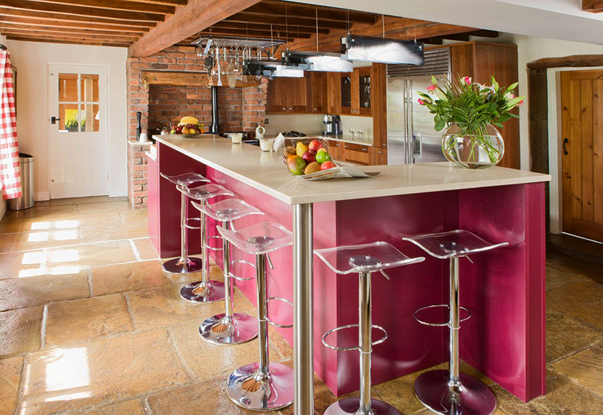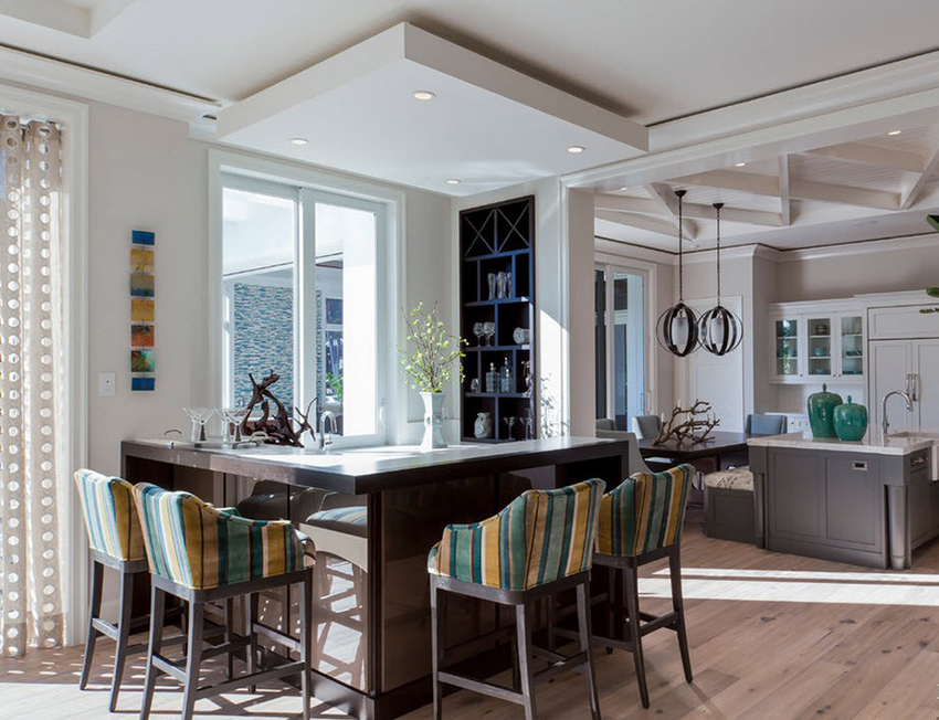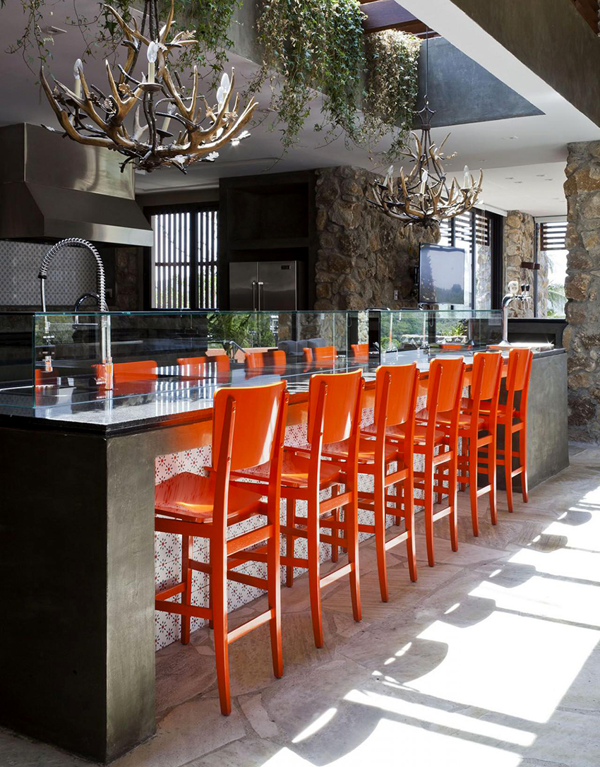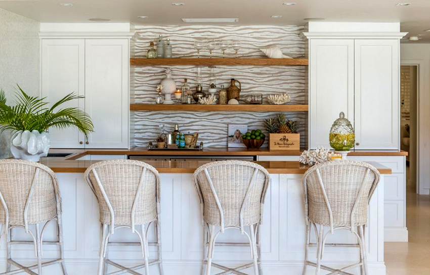 Alkuperäisistä keittiön baarituoleista tulee todellinen sisustus, mikä tekee huoneen ilmapiiristä kevyen, lämpimän ja eksoottisen.