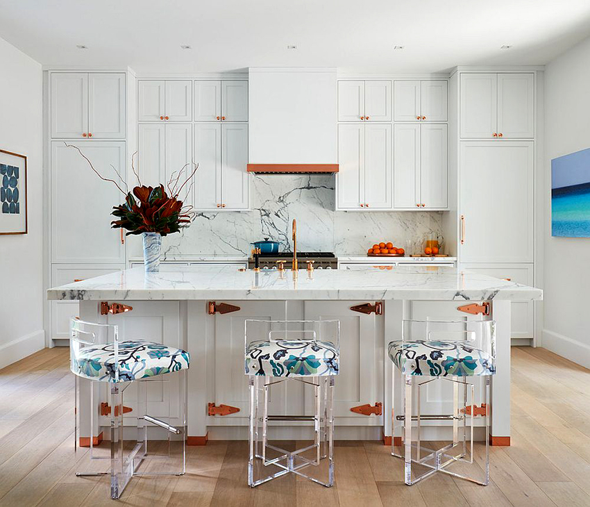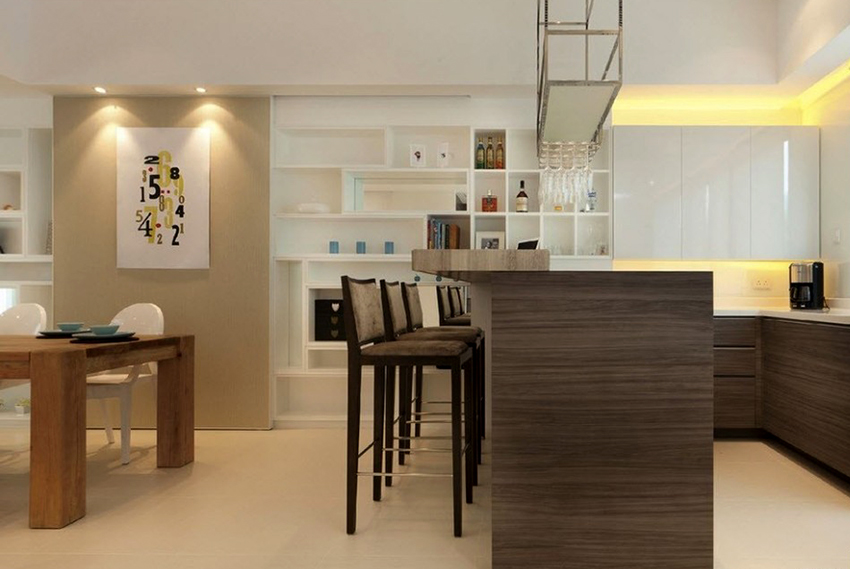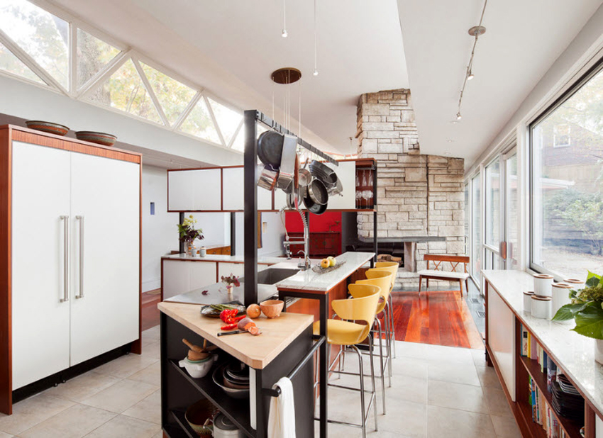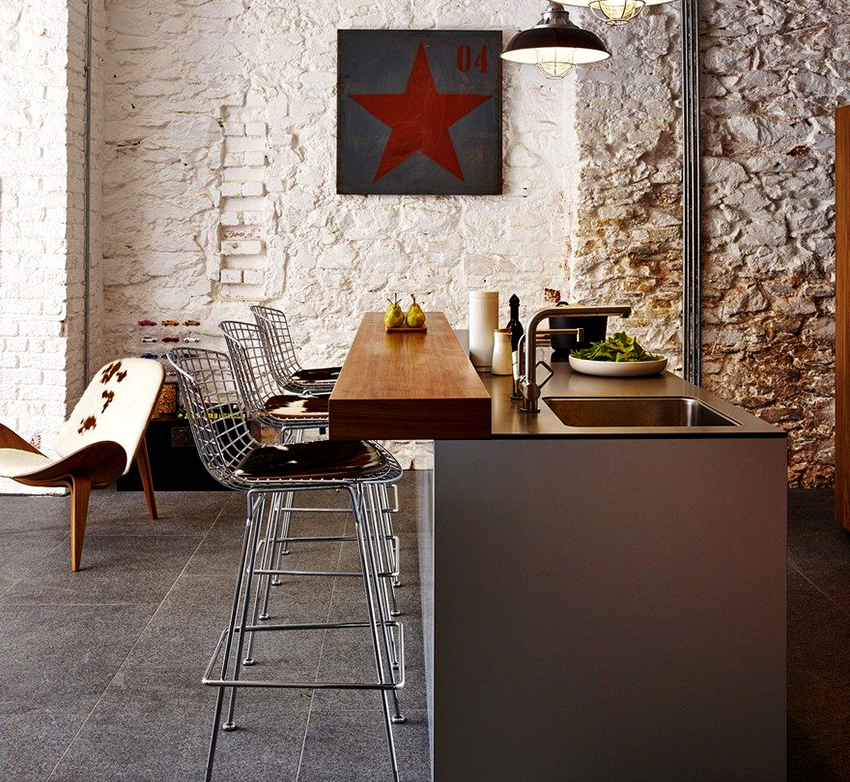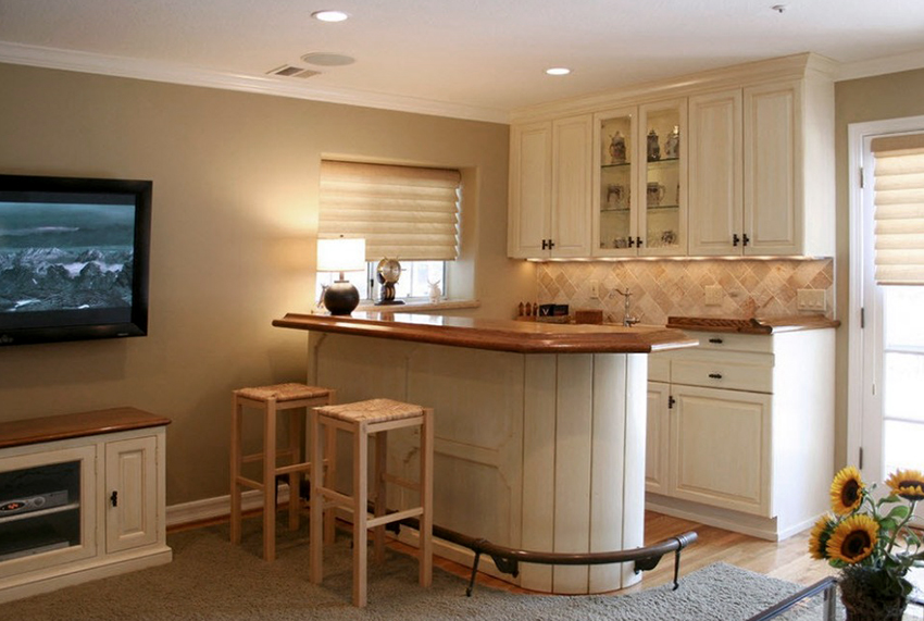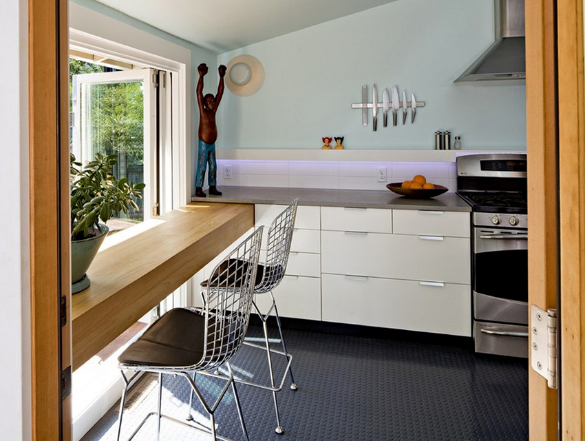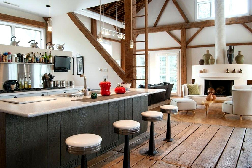 Alkuperäisistä keittiön baarituoleista tulee todellinen sisustus, mikä tekee huoneen ilmapiiristä kevyen, lämpimän ja eksoottisen.