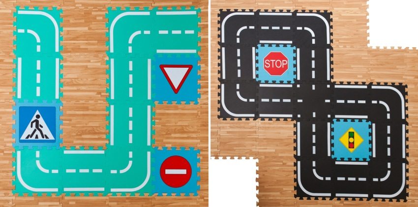 Kiehtova sarja, jossa on kuvio liikennemerkkien ja merkintöjen muodossa, kaupunkien infrastruktuuri, maailmankartta, piirrettyjä piirrettyjä piirroksia, satuhahmoja, on 6-vuotiaiden lasten ulkopelien aihe. Matot - ympyrän tai monien sukupolvien tuntemien klassisten pelien muodossa olevat palapelit antavat erityisominaisuuden lastenhuone.