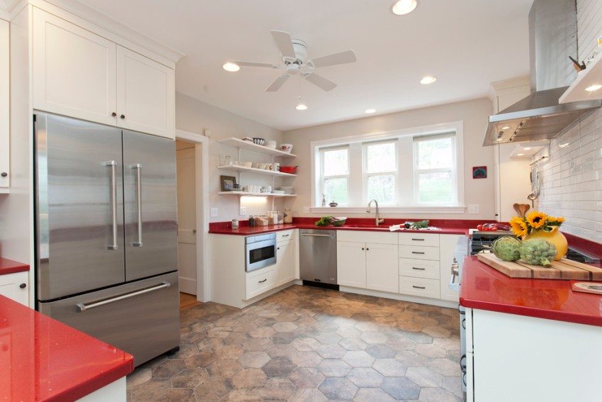 Keittiön lattialaattojen suunnittelu (valokuva on elävä vahvistus tästä) on hyvin monipuolinen. Muodon ja koon lisäksi sillä on niin paljon värejä ja kuvioita, että se voi tyydyttää minkä tahansa suunnittelijan.