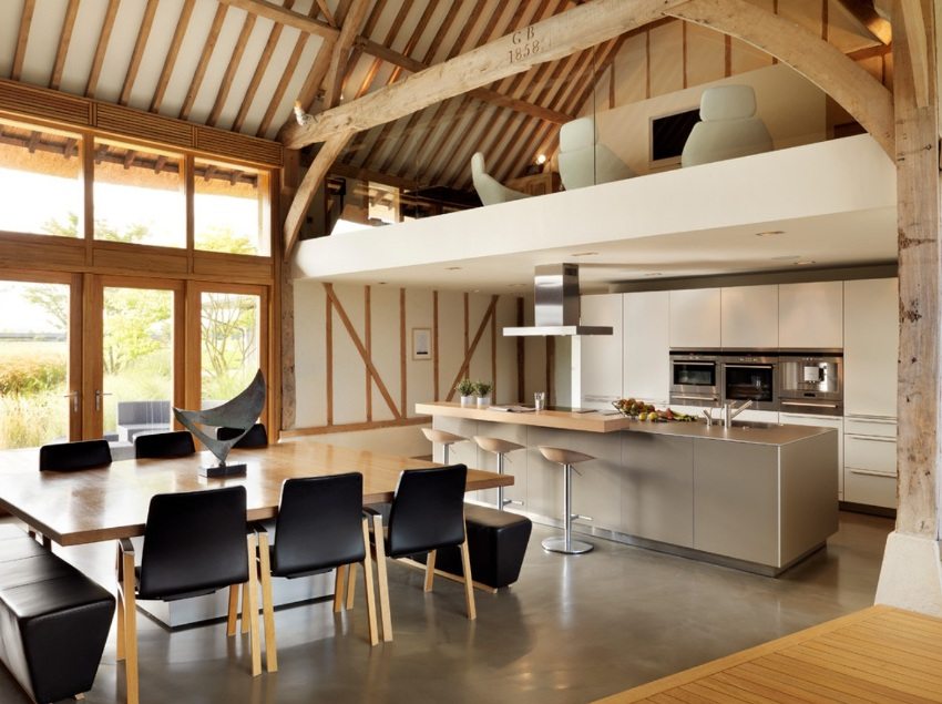 Moderni keittiön sisustus teollisen tyylin elementteillä