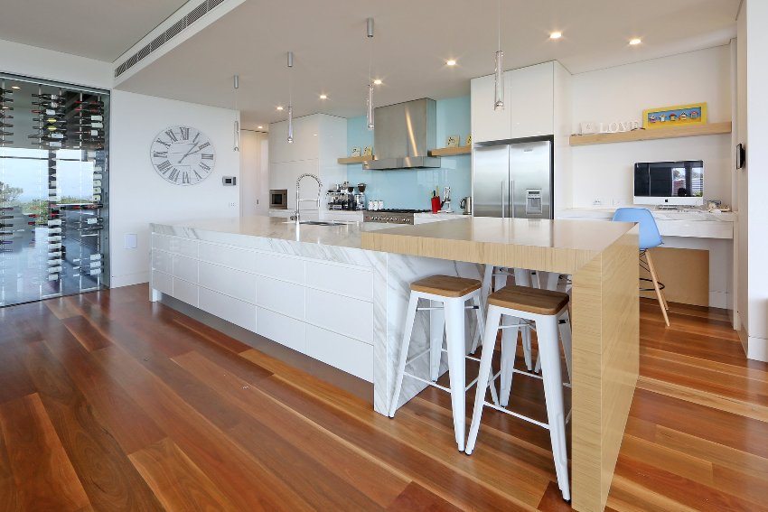 Kosteutta kestävä laminaatti keittiö-ruokasali kerroksessa