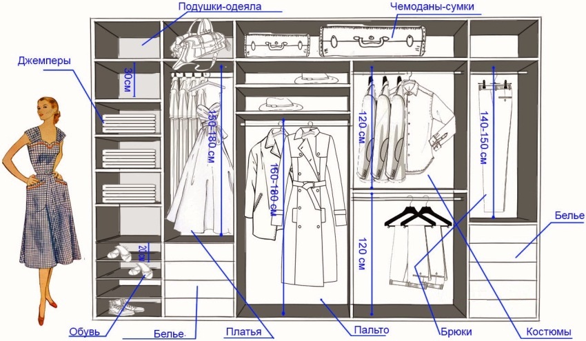 Ennen kuin teet tilauksen pukuhuoneelle sen koon mukaan, sinun on harkittava huolellisesti kaikki yksityiskohdat: kuinka monelle ihmiselle se on suunniteltu, kuinka monelle ja mitä asioita on tarkoitus säilyttää siinä. Tätä varten on syytä tarkastaa kaikki henkilökohtaiset tavarat. Tätä menettelyä tarvitaan pukeutumishuoneen sisätäyttöä varten tarvittavien elementtien ja lisävarusteiden sekä niiden asennustavan määrittämiseksi.