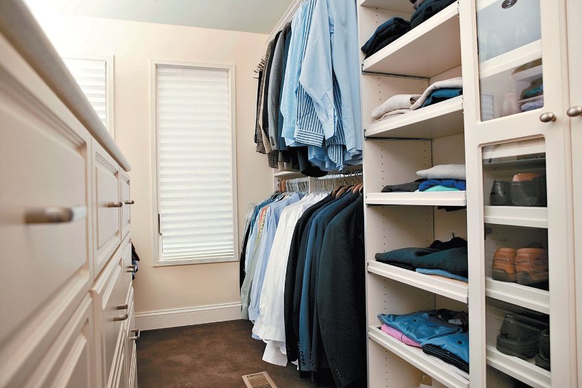 Rationaalisen ja systemaattisen lähestymistavan varmistamiseksi tavaroiden säilyttämiseen talossa tulisi olla pukeutumishuone: mieluiten tämän huoneen mittasuhteet tulisi ottaa huomioon jopa projektin laatimisvaiheessa. Jos talon alueella on riittävät rajat, olisi mukava sijoittaa siihen pukuhuoneet jokaiselle perheenjäsenelle, lapset mukaan lukien. Jos huoneistossa on vaatimaton koko, se voi olla yksi yleinen, mutta huolellisesti harkittu huone.