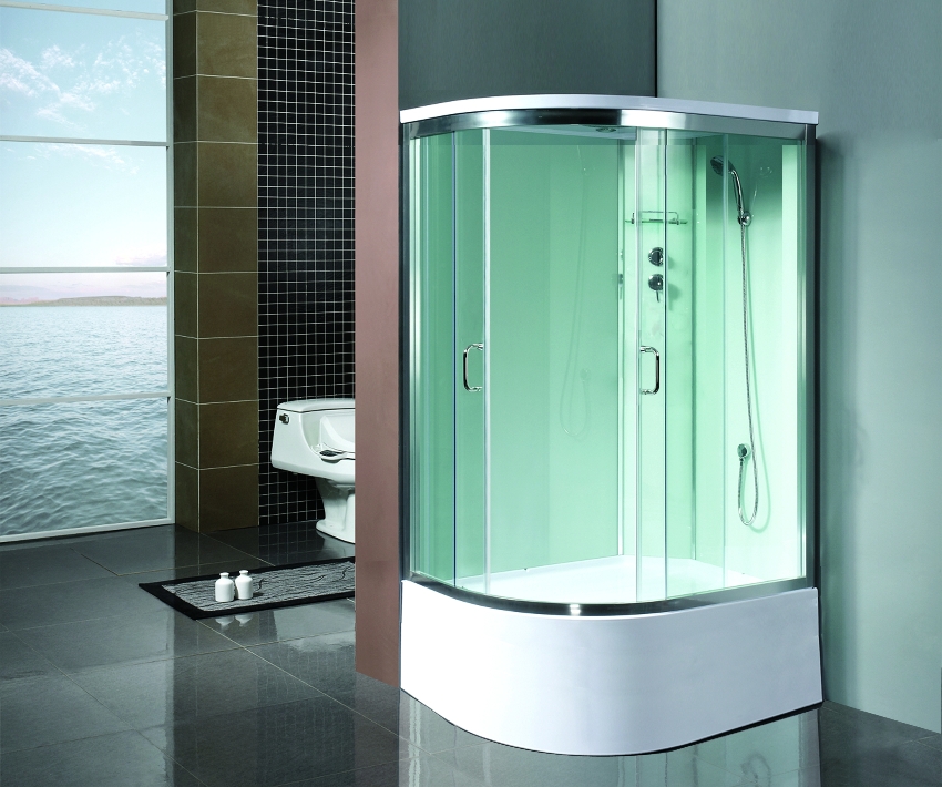 Malli on varustettu sekoittimella, pieni hylly, tässä käytetään alumiiniprofiileja ja kaaria.Ovet on valmistettu mattasävytetystä lasista. Suihkuhuoneessa on 4 mm paksu turvalasi, maalattu valkoiseksi. Suihkupää on kiinnitetty joustavaan letkuun. Lava on 40 cm korkea ja varustettu metallirungolla. Valmistuksen aikana käytetään vahvistusta, joka antaa lisälujuuden lavalle.