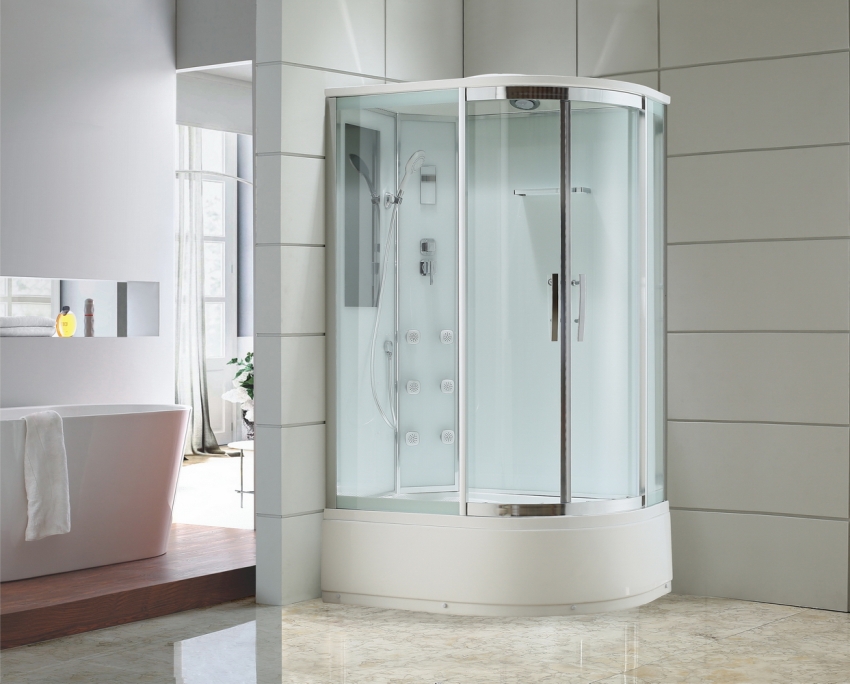 Suihkuhuone 120x120 on suunniteltu asennettavaksi suuriin kylpyhuoneisiin. Mökin ovet metalliprofiiliin kiinnitettävä liukuva, valmistettu kahdesta versiosta: valkoinen ja hopea. Etuosa koostuu 2 osasta: 2 ovea ja 2 kiinteää lasia ovien sivuilla. Lasin paksuus 4 mm. Tämän mallin käyttäjien arvostelut ovat erittäin myönteisiä.