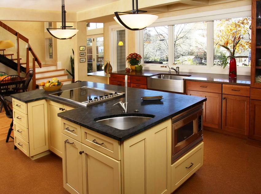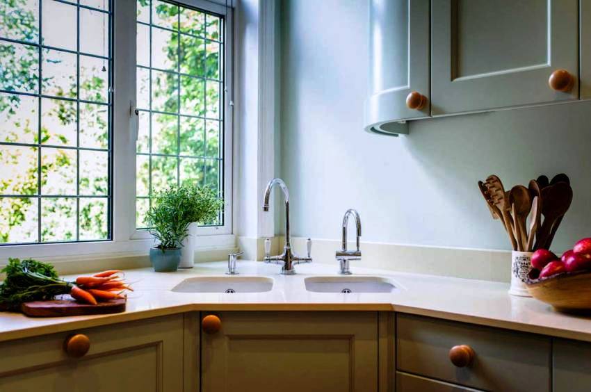 Keittiö kulma-altaalla: mihin pesuallas sijoittaa