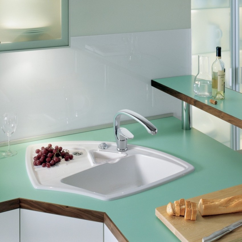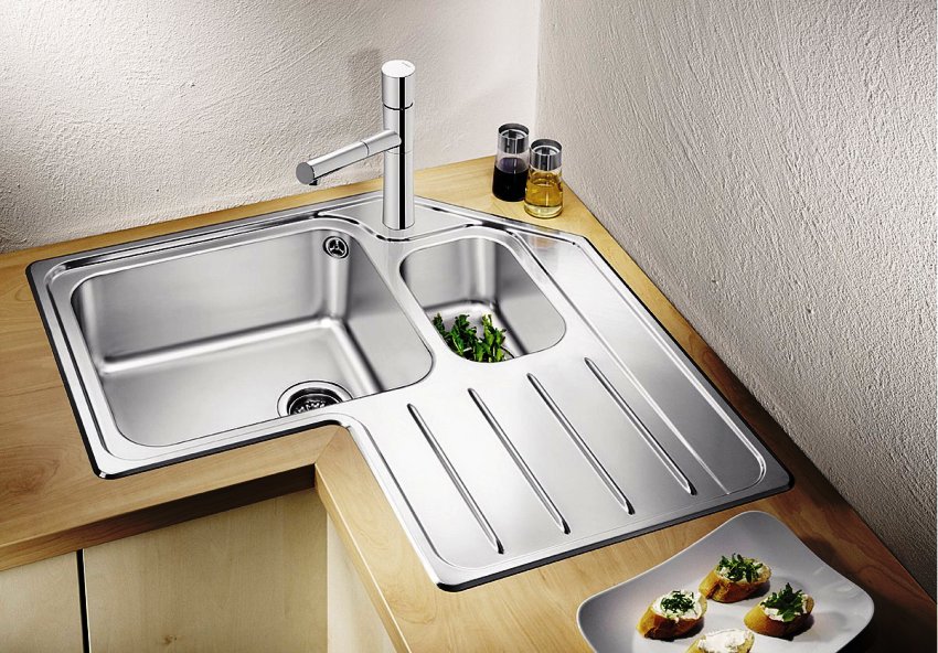 On heti sanottava, että pesuallasteiden kulmamallit asennetaan useimmiten keittiöihin, joissa on asettelu L-kirjaimen muodossa. Tälle keittiöyksikön sijoitusmenetelmälle on ominaista maksimaalinen toimivuus ja mahdollisimman pieni käyttöasteen käyttö.