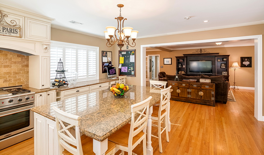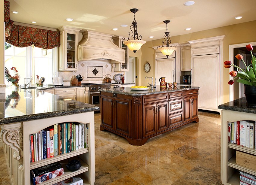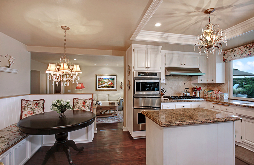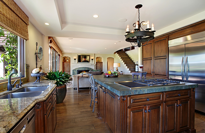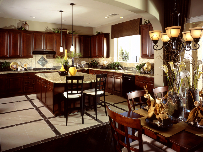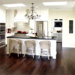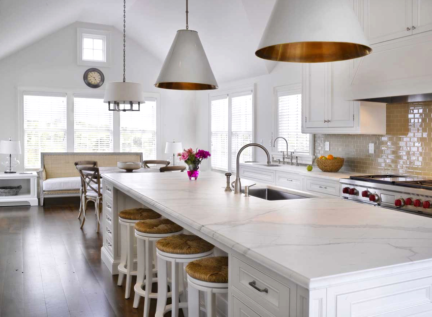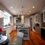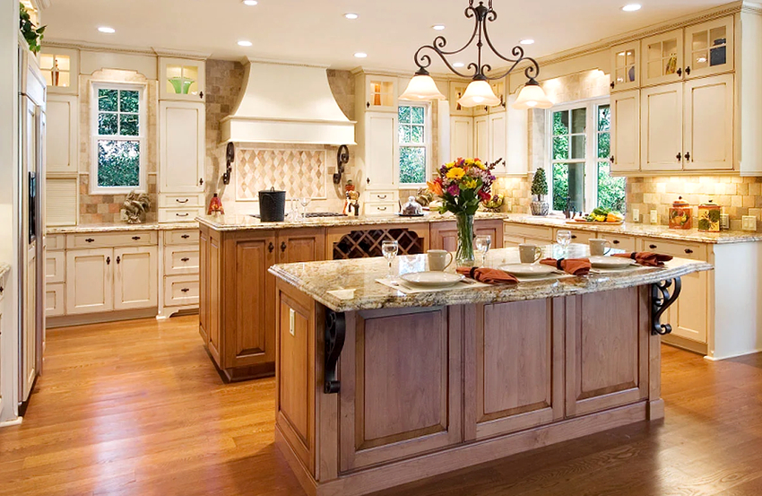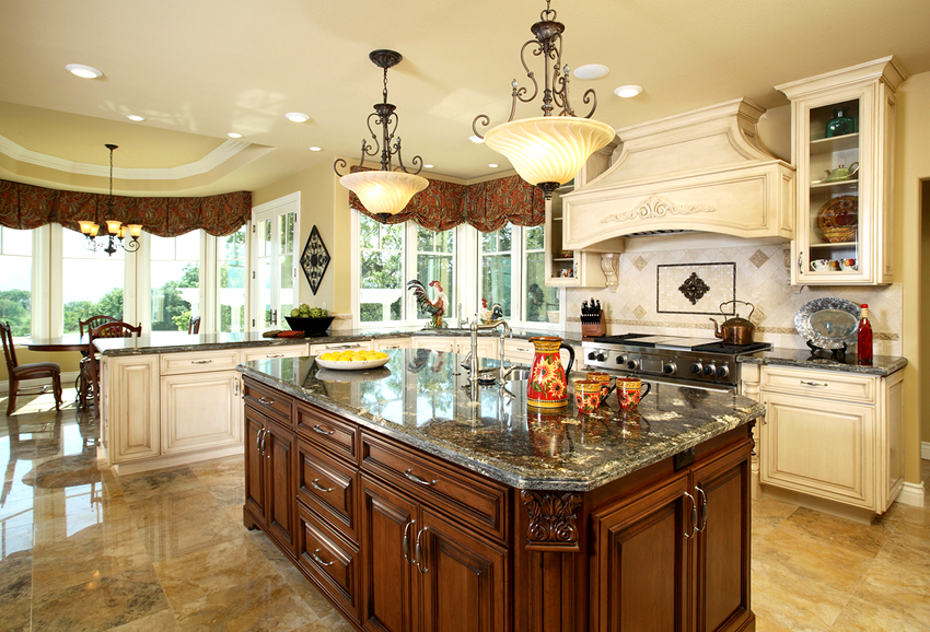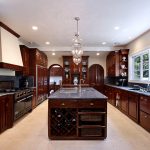 U prostranim kuhinjama bilo kojeg oblika, luster bi se trebao nalaziti iznad blagovaonskog stola na udaljenosti od najmanje 1,2-1,4 m od njega, što će isključiti mogućnost nelagode kod ljudi koji sjede iza njega. U tom je slučaju radna površina osvijetljena pomoću dodatnih lokalnih izvora.