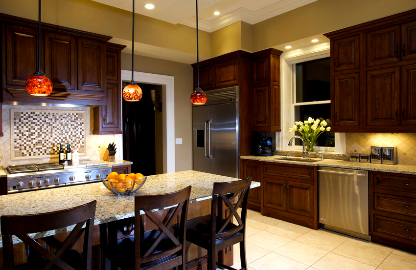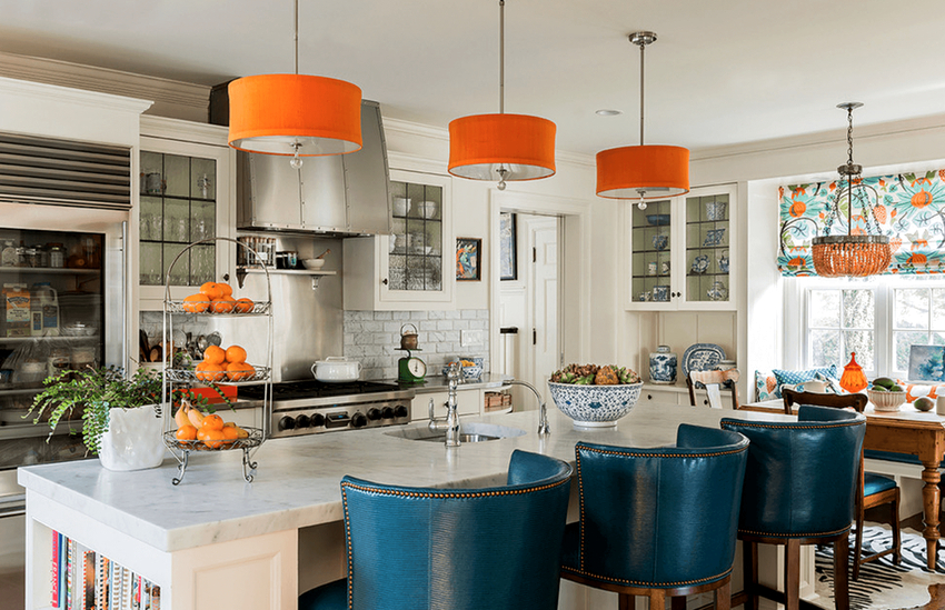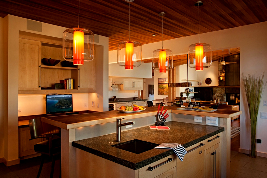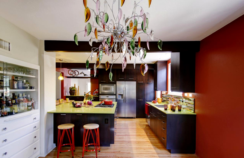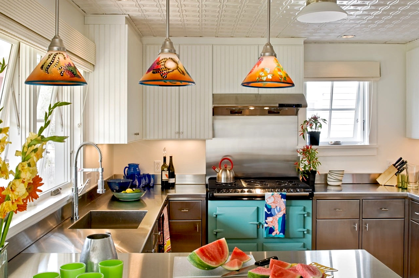 Rješenja u boji za luster u kuhinji: fotografija rasvjetnih uređaja u unutrašnjosti