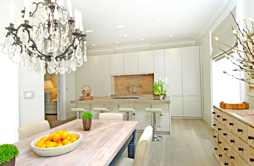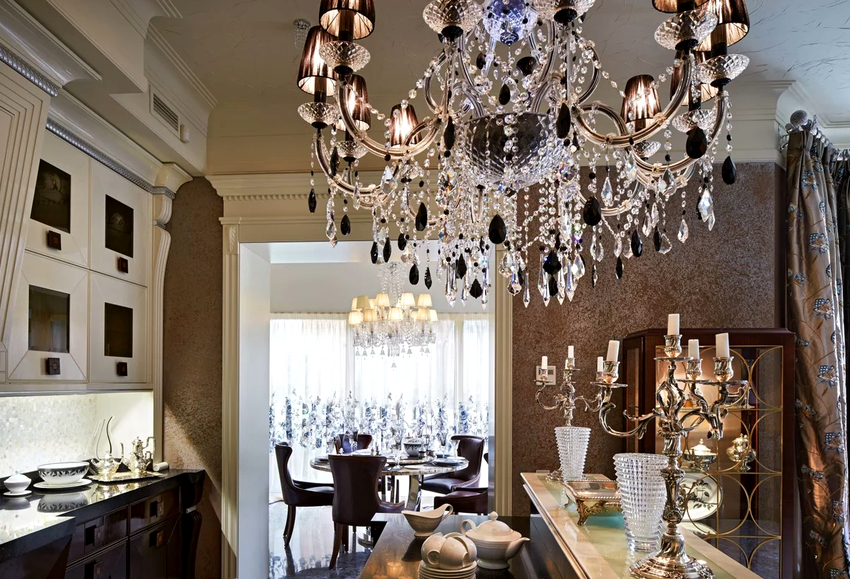 Koristan savjet! Kristalni luster izgledat će prikladno u bilo kojem kuhinjskom interijeru, koji može transformirati najskromniji interijer sobe.