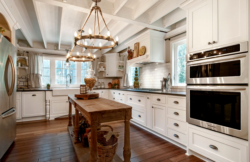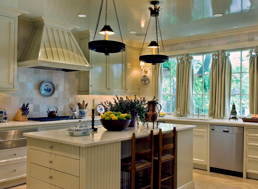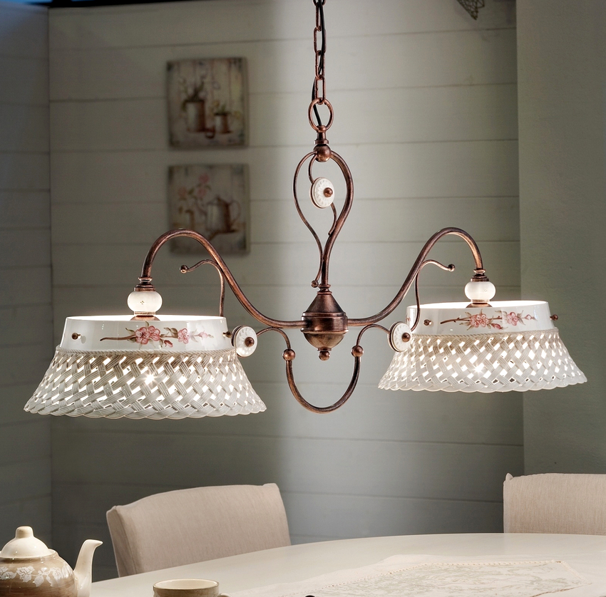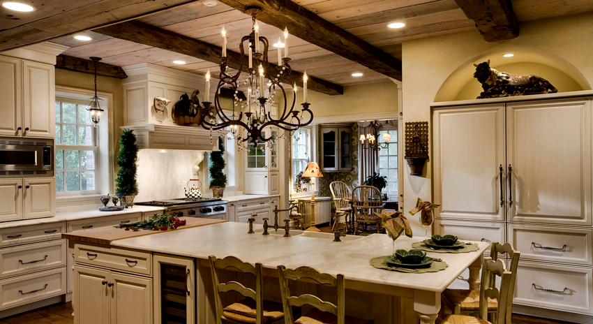 Za ruralna područja prednost se daje modelima izrađenim pomoću biljnih tema. Kuhinjski luster u stilu Provence može se nadopuniti umjetnim cvijećem, lišćem, šljunkom i grančicama. Dekorativni predmeti mogu biti izrađeni od metala, drveta, tekstila ili stakla. Lusteri u kuhinji Provence s efektom ostarjele površine u srebru ili bronci su dobrodošli. Možda nedostaju plafoni rustikalnih lustera. Zamijenite ih ukrasnim žaruljama.