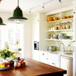 Zeleni luster izgledat će originalno u modernoj kuhinji, što će atmosferi dodati svježinu i profinjenost. U skladu s takvim rasvjetnim tijelom, u interakciju će ući i drugi unutarnji elementi u žutoj, narančastoj ili smeđoj sjeni. Glavni ton trebao bi biti bijeli.