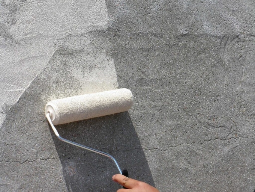 Zatim se nanosi temeljni premaz, poželjno je da duboko prodire u osnovni materijal. Ako na mjestu postoje metalni dijelovi, moraju se bojiti odvojeno, vodeći računa o nanošenju sredstava za zaštitu od korozije. Često se u gradnji koriste stanični i porozni betonski slojevi. U takvim slučajevima površina je obojana najmanje dva puta.